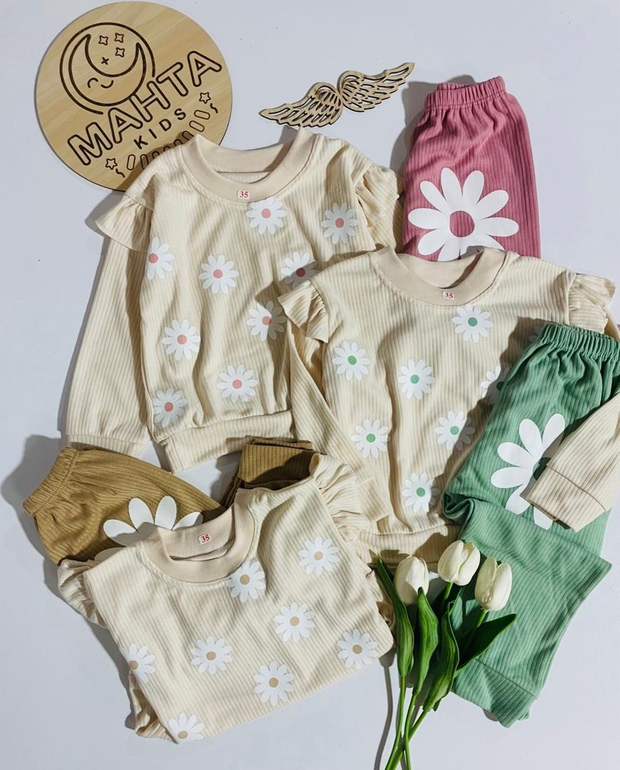 بلوز شلوار کبریتی گل بابونه بزرگ (کرمی روشن) 3029